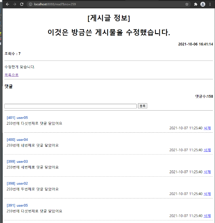 - 리턴된 값을 insert와 마찬가지로 read page 댓글 수에 적용되도록 하겠다.