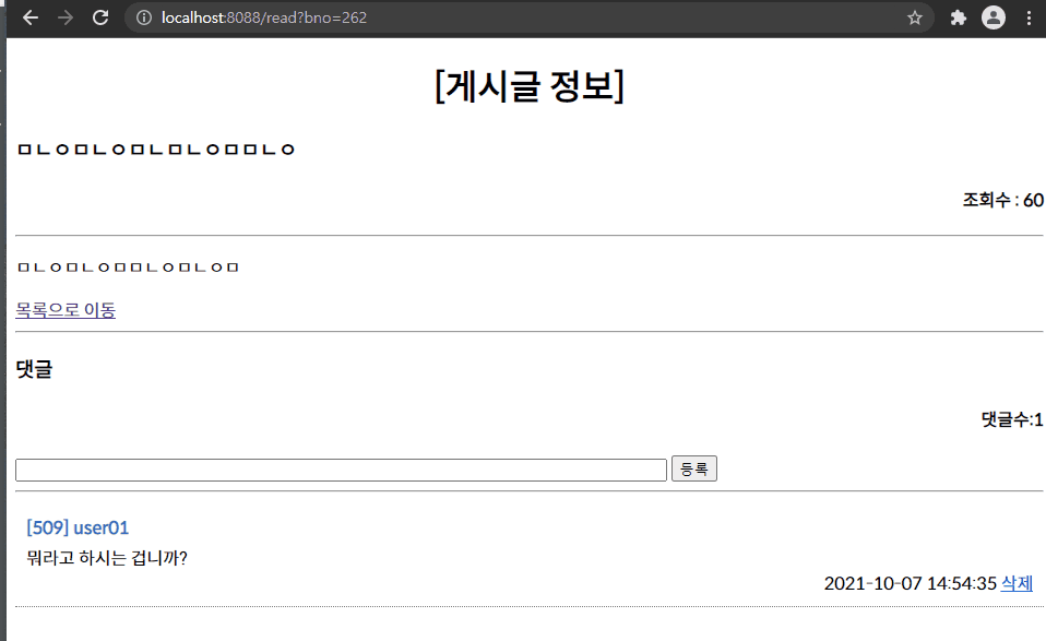 - 이제 read 페이지에 댓글을 출력해주도록 하겠다.