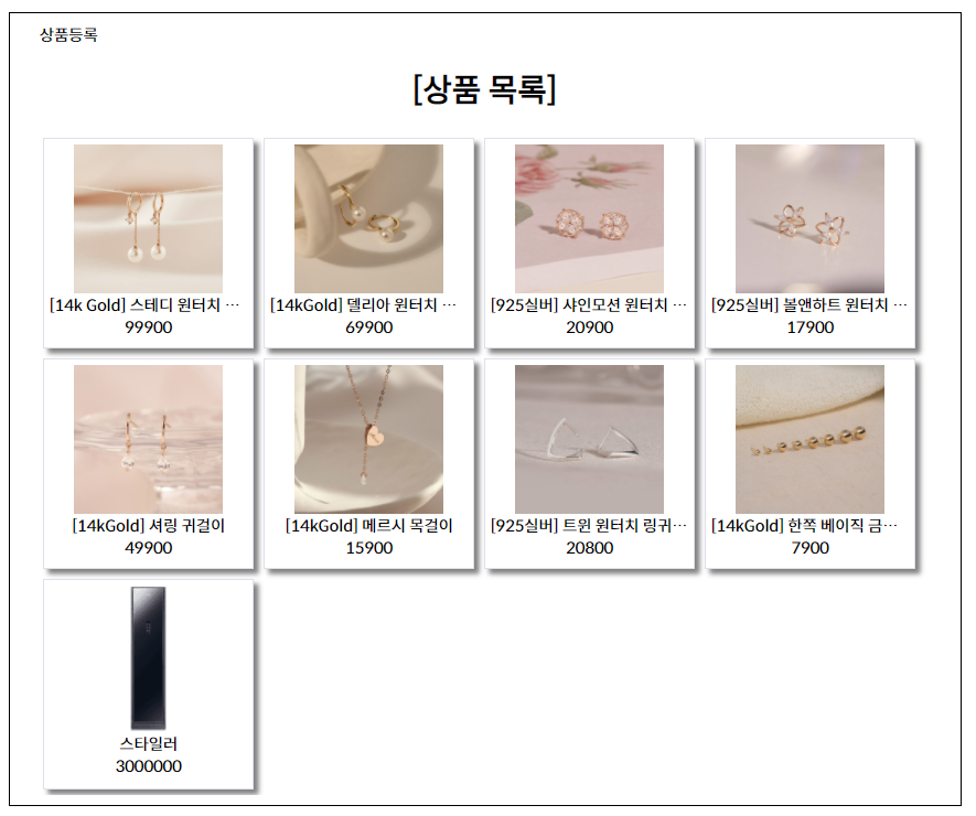 values('P114', '[14kGold] 셔링 귀걸이', 49900, 'img05.jpg');