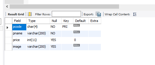 insert into tbl_product(pcode, pname, price, image)