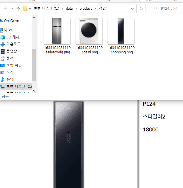 - 해당 경로에 다운받은 이미지 삽입 C:\data\product