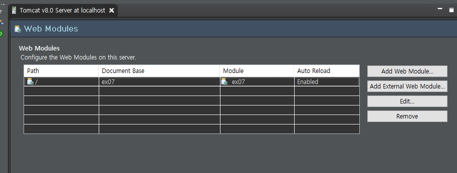 - 변경 후 서버 모듈을 설정해준다.
