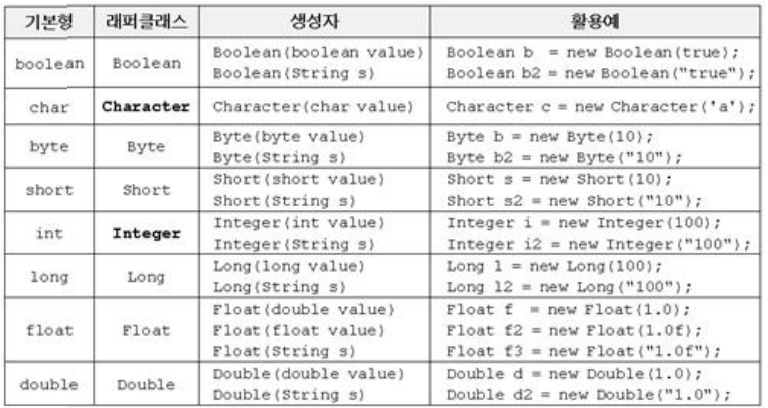 - 이때 사용하는 것이 래퍼클래스이다. 아래 도표를 참조하자.