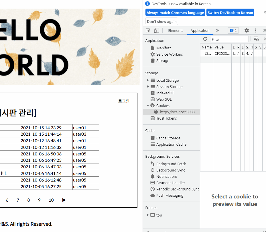 - home에서 web의 cookie 유무 확인 후 로그인 유지