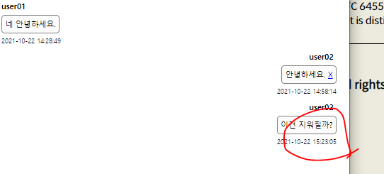 // 메시지 부분에 본인이 작성한 글을 삭제할 수 있게 a tag 활성화