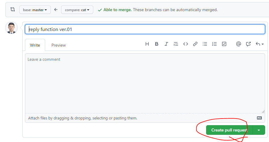 이제 branch에 업로드한 파일을 팀장이 merge하면 된다.