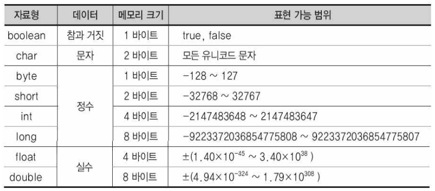 - 8개(boolean, char, byte, short, int, long, float, double)
