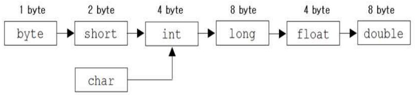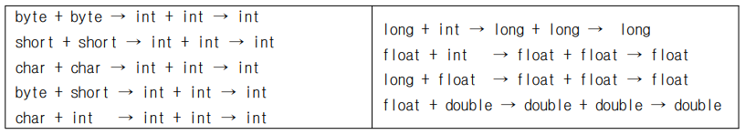 - byte, short, char 형 데이터는 이항연산시 int로 변환된다.