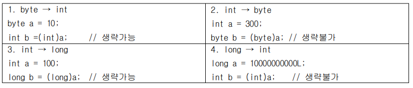 - boolean을 제외한 7개의 기본형은 서로 형변환이 가능하다.