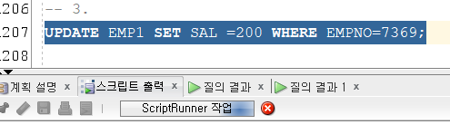 UPDATE EMP1 SET SAL =200 WHERE EMPNO=7369;