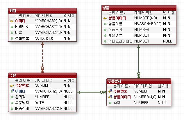 -- 1. 삽입 2. 수정 3. 삭제 순으로 한다.