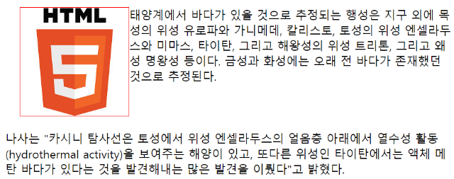 배치하여 텍스트 및 인라인 요소가 주위를 둘러쌀 수 있도록 한다.