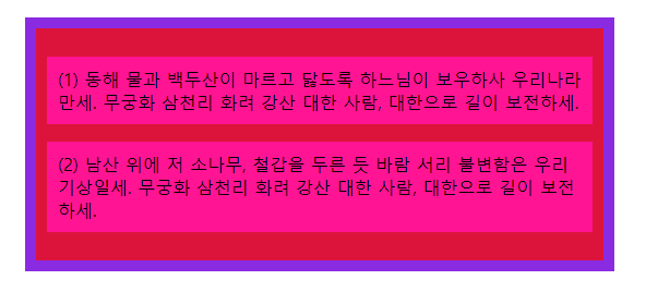 <p>동해물과 백두산이 마르고 닳도록</p>