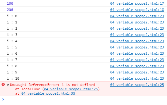 for (let i = 0; i <= 10; i++) { //i 는 for문 안에서 선언된 지역 변수
