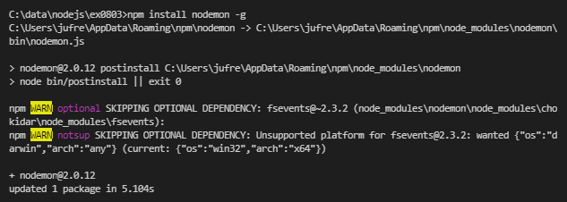 4) VSC 터미널에 왼쪽과 같이 npm install nodemon -g을 입력하면 된다.