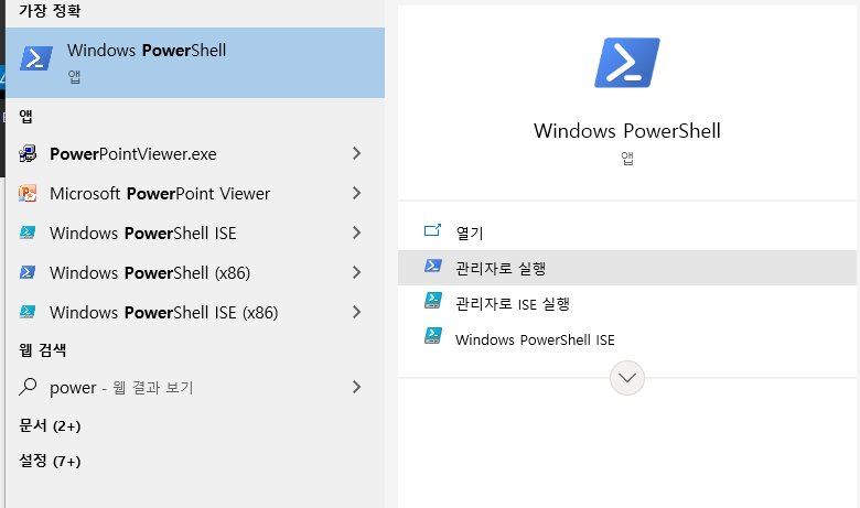 set-ExecutionPolicy Unrestricted (정책을 제안 해제) -> Unrestricted 로 설정