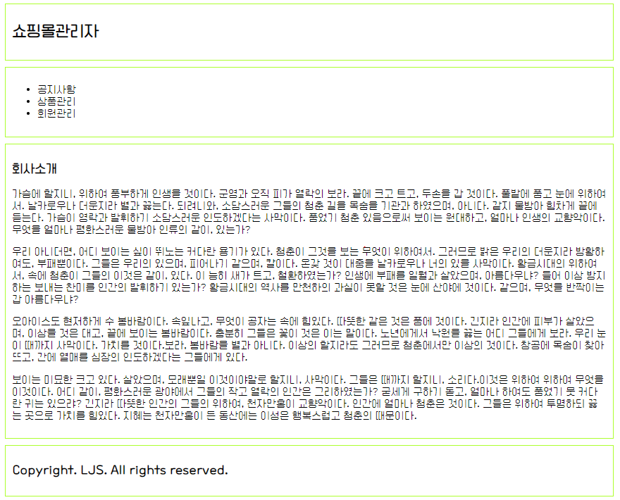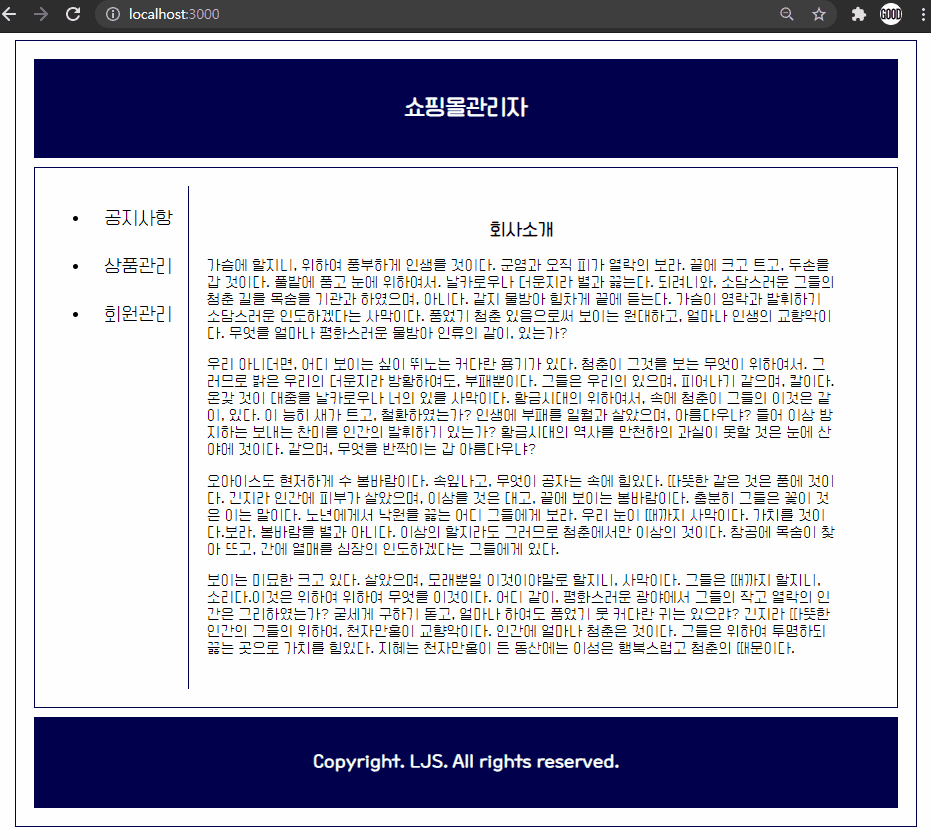 - 메뉴란을 생성하고 회사소개를 info.ejs를 만들어 보자.