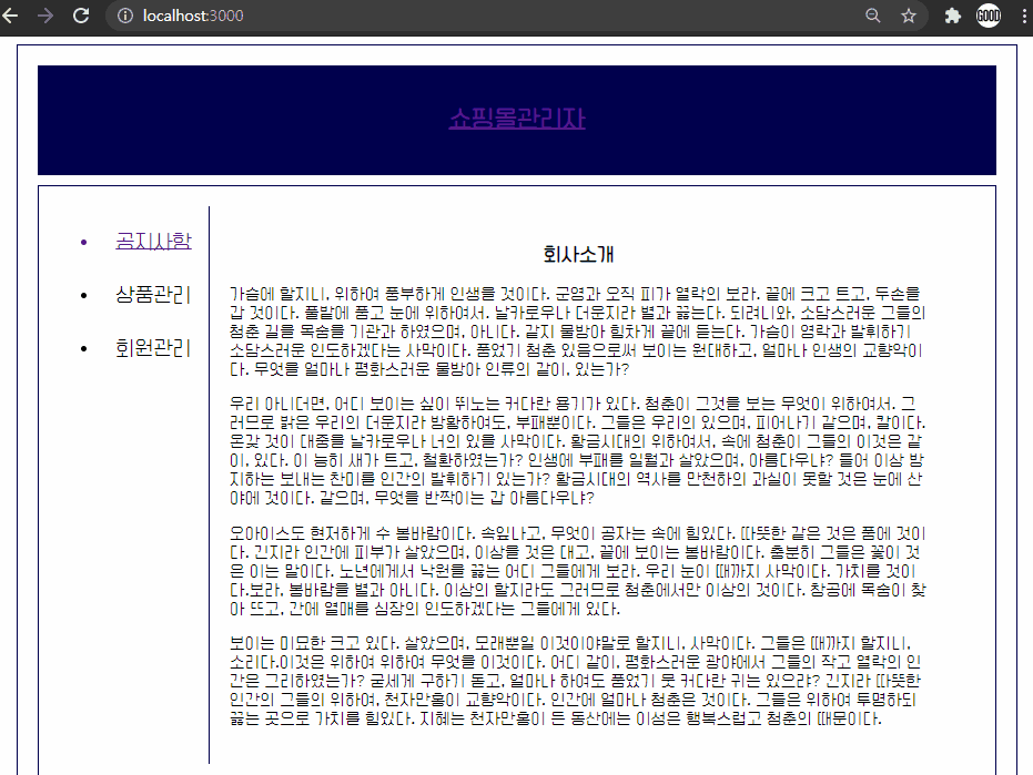 - 메뉴 클릭시 컨텐츠 부분이 바뀌도록 해보자.