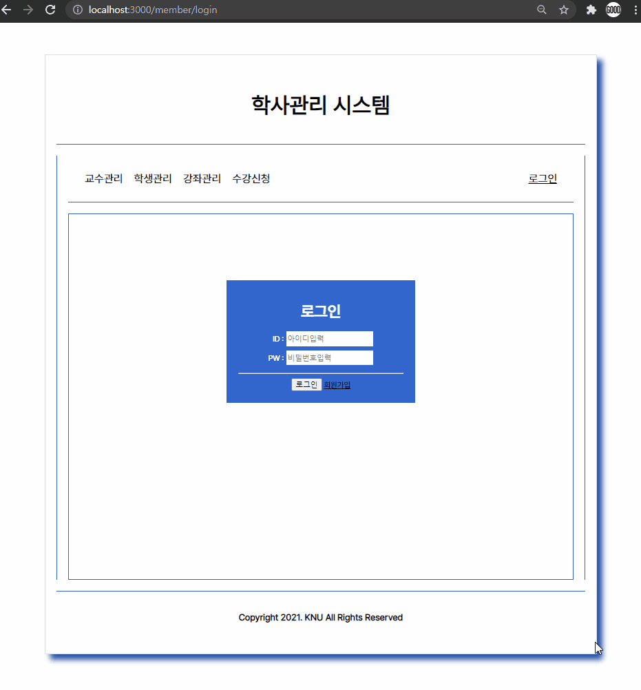 - 로그인한사람만 학사관리 시스템을 이용할 수 있는 프로그램을 만들어보도록 하자. 회원등록하고 회원삭제하는 기능도 넣도록 하자.