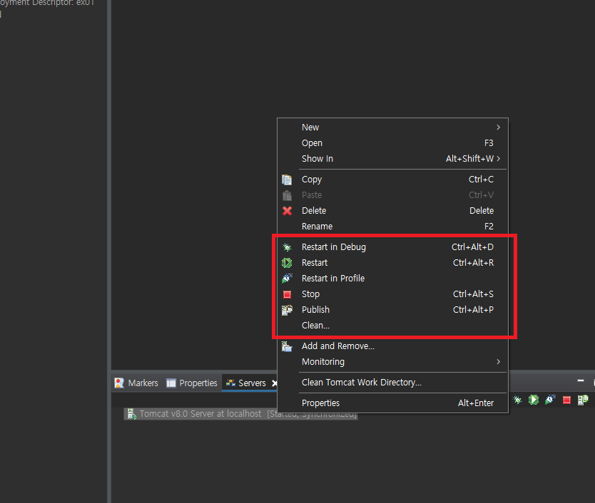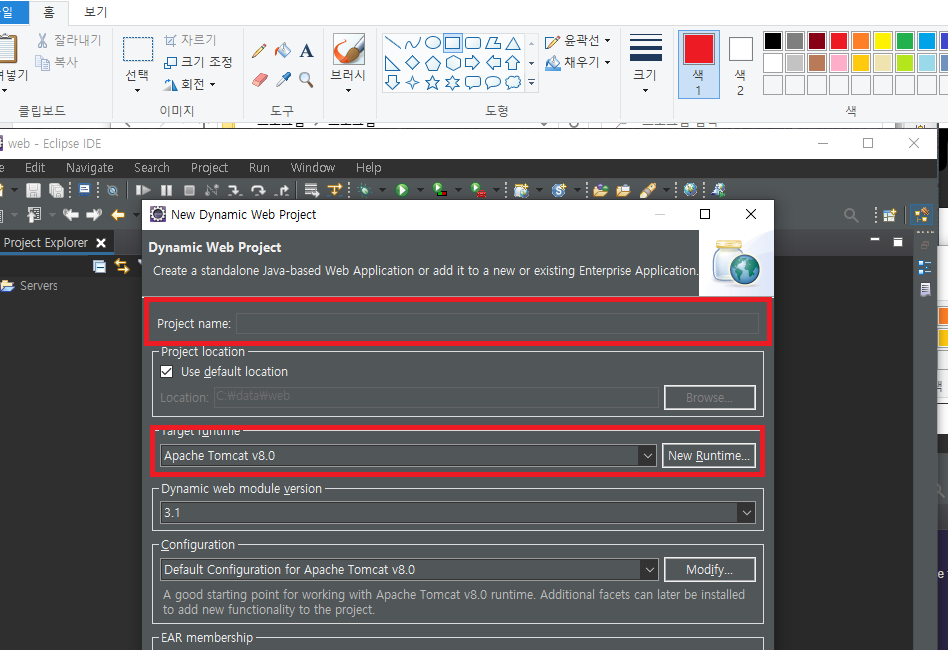 5. 타겟 런타임이 아파치 톰켓 8.0으로 되어있는지 확인한다.
