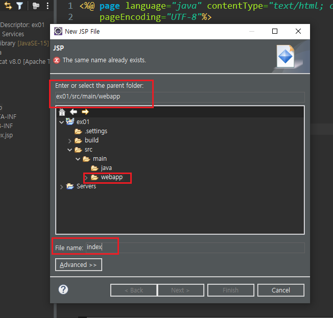 6. webcontent에 view역할을 하는 index.jsp를 만들어준다.