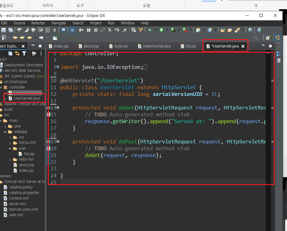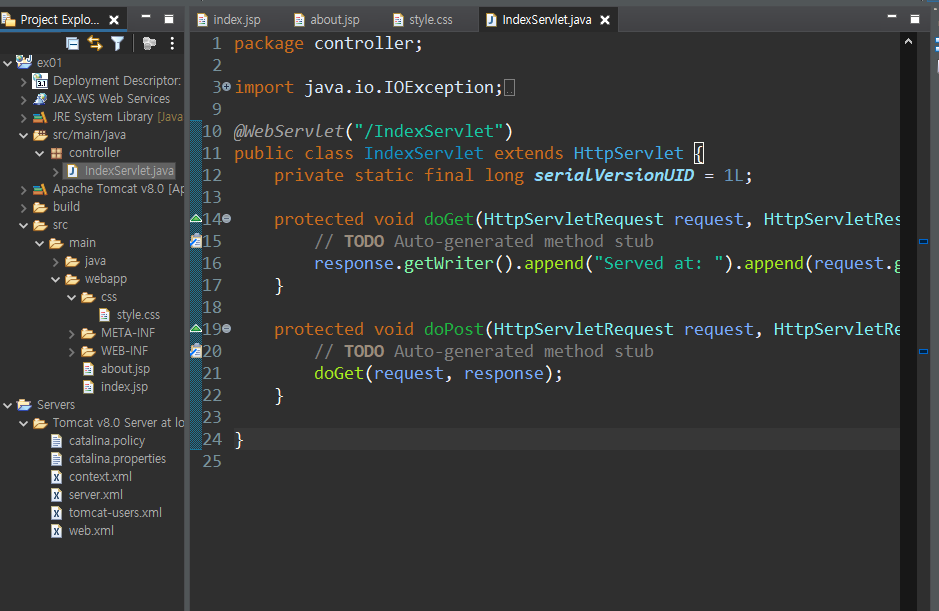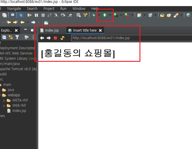 ㄴ IndexServlet.java에 위와 같이 입력하고 서버를 구동하면