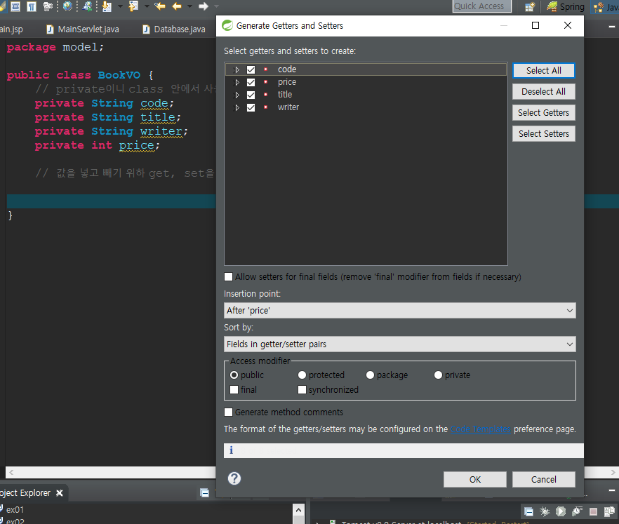 - bookservlet.java에 다음과 같이 넣어준다.