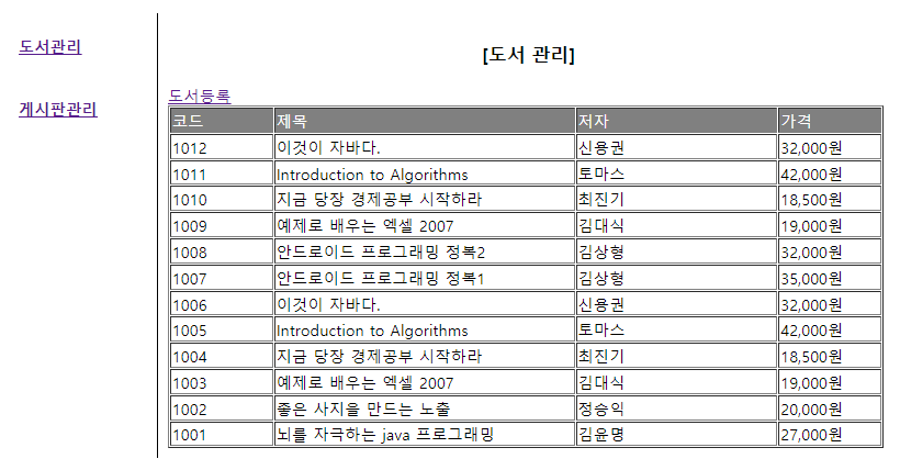 - 도서관리에 링크를 걸어보자. 이를 위한 컨트롤러를 만들어보자.