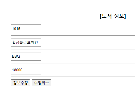 - bookdao.java 에 다음과 같이 상품수정 메서드를 추가해준다.