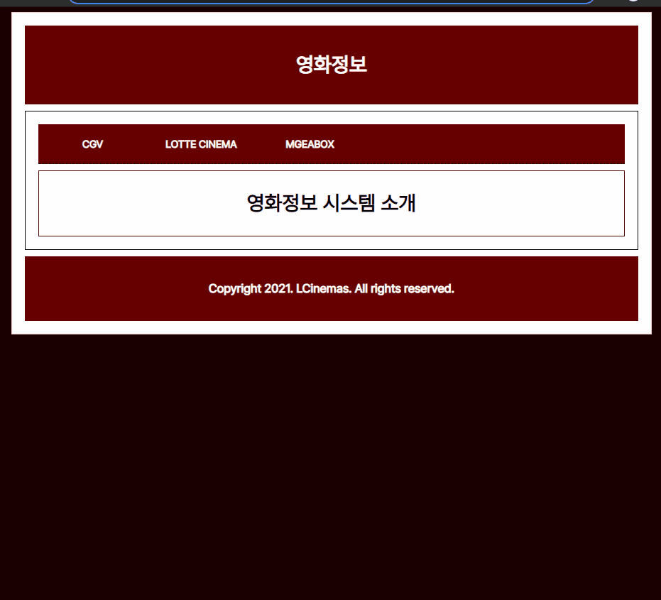 - 프로젝트 만들고 main, about, movie\list cgv lotte megabox 페이지와 이들을 연결할 서블릿을 mainservlet, movieservlet으로 하도록 하자.