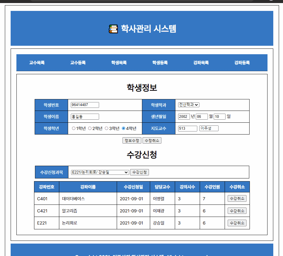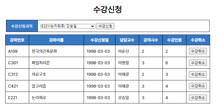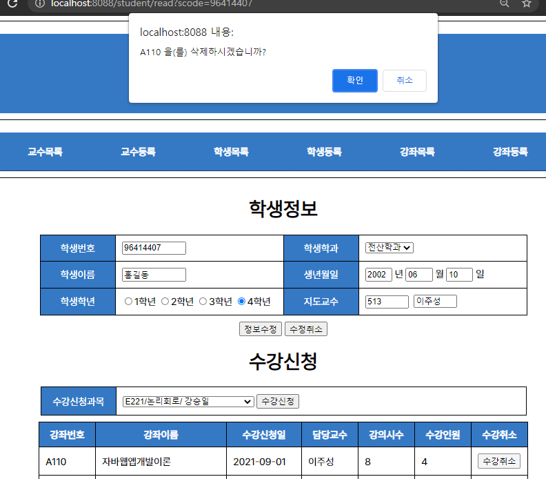 - 수강취소 버튼을 통해서 학생이 신청한 강좌를 삭제해주겠다.