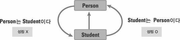 ㄴ 그러나 이처럼 하위클래스가 상위 클래스에는 성립이 되지 않는다.