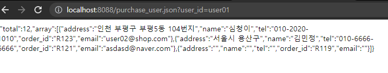 values('user02', 'pass', '심청이', '인천 부평구 부평5동 104번지', '010-2020-1010', 'user02@shop.com');