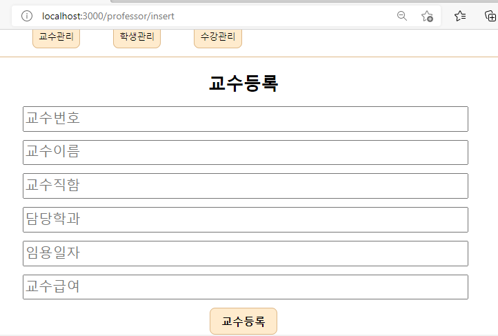 - 교수등록 페이지를 만들고 링크를 걸어보겠다.