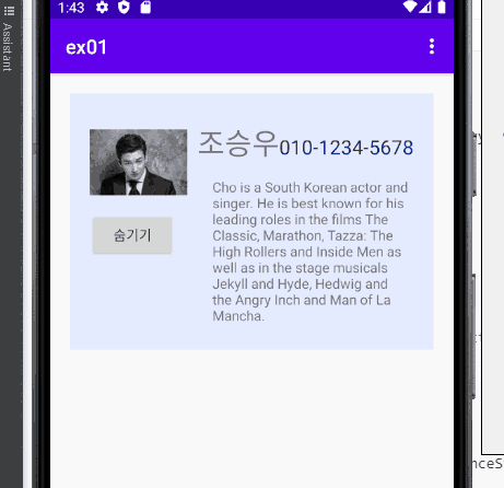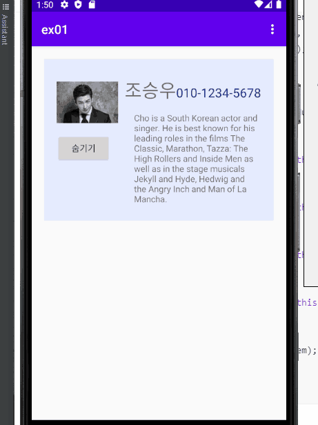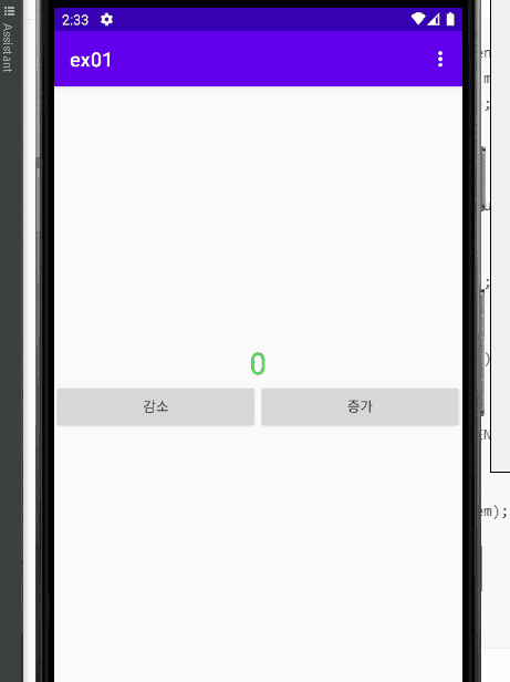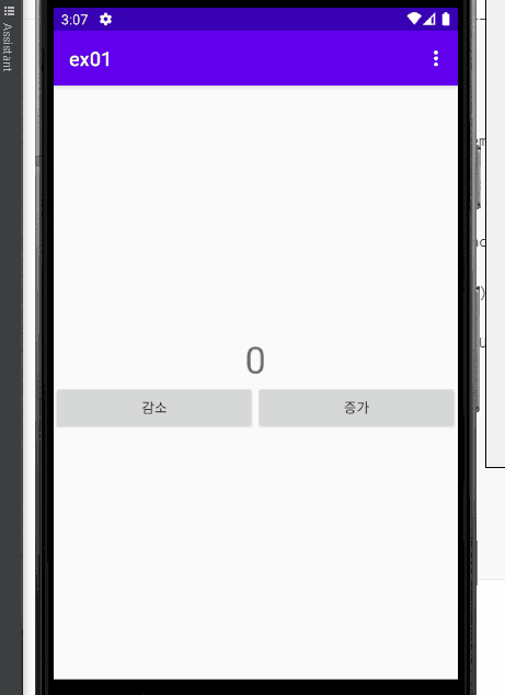 - Run - Run - android로 ex01을 실행해보도록 하자.