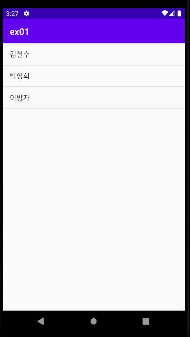 - Run - Run - android로 ex01을 실행해보도록 하자.