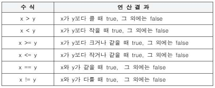 - 기본형(boolean 제외)과 참조형에 사용할 수 있으나 참조형에는 ==와 !=만 사용할 수 있다.