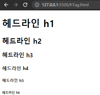 - 강조 1 ~ 6까지 가능 하며 숫자가 클수록 작아짐