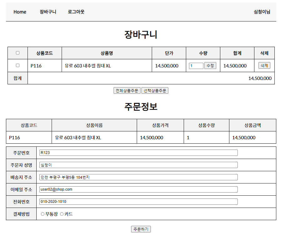 - 장바구니에서 상품을 주문하면 장바구니 페이지가 초기화되도록 하겠다.