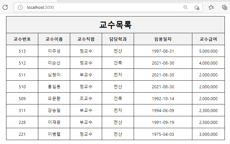 var sql = 'select *, date_format(hiredate,"%Y-%m-%d") fhiredate, format(salary,0) fsalary from professors order by pcode desc';