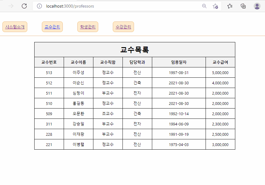 const {pcode, pname, dept, hiredate, fhiredate, salary,title, fsalary} = professor