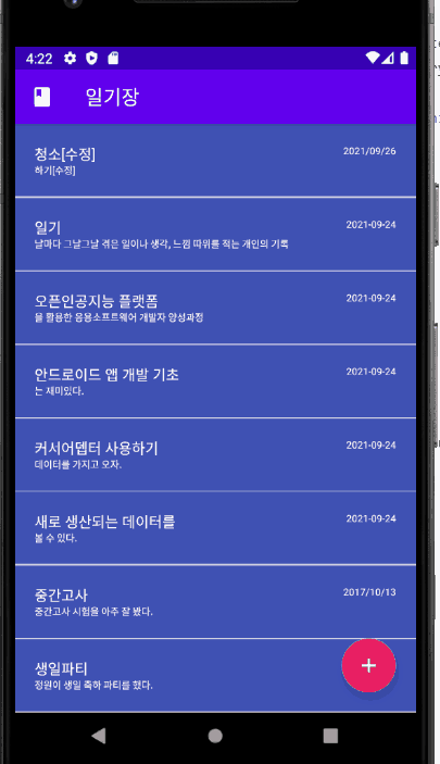 - 데이터 입력 후 앱을 재실행 할 필요없이 데이터가 갱신되도록 하겠다.