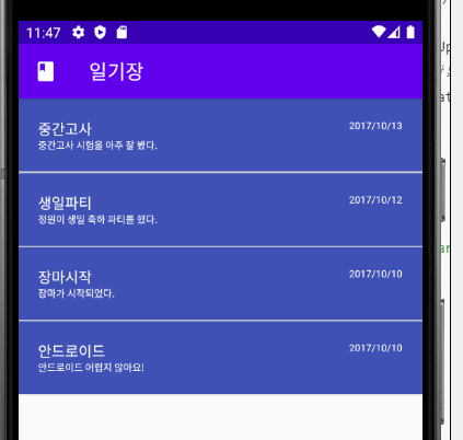- 다이어리 아이템을 클릭하여 정보를 읽는(Read) 작업을 하도록 하겠다.